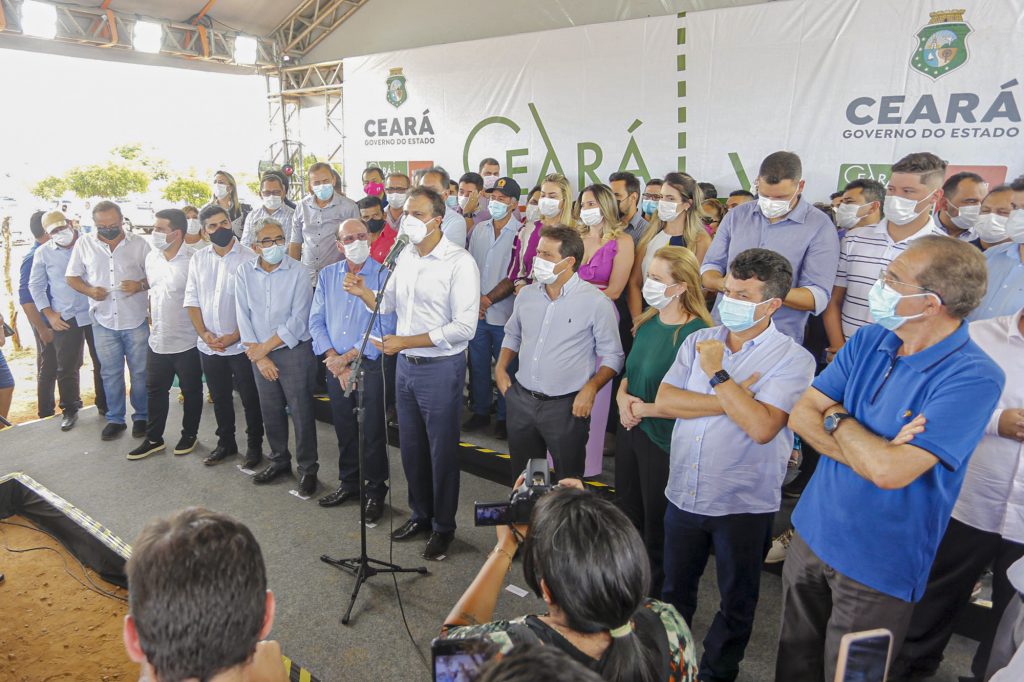 O governador do Ceará, Camilo Santana, esteve em Crateús para a entrega de duas obras importantes para a cidade e região: a primeira etapa da Estrada da Produção (trecho Crateús-Realejo), e a unidade da Perícia Forense. Na ocasião, foi assinada a ordem de serviço para obras de esgotamento sanitário dos bairros Cidade 2.000 e Patriarcas. A seu lado estava o prefeito da cidade, Marcelo Machado, a assessora especial do governador, Janaína Farias, o titular da Secretaria da Segurança Pública (SSPDS), Sandro Caron, e o superintendente de Obras Públicas (SOP), Quintino Vieira. Além deles, deputados, prefeitos da região e outras autoridades locais.