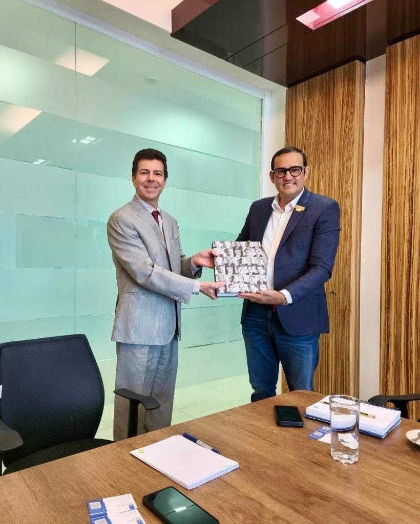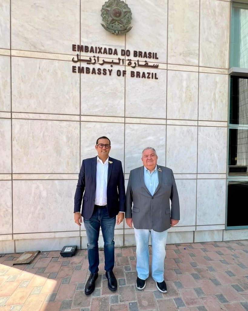 O presidente do Sindquímica, Beto Chaves, o vice-presidente do sindicato, Marcos Soares, e a esposa do presidente do Sindquímica e empresária do setor, Girleuma Bezerra, deram início, nesta segunda-feira (14), ao cumprimento de importante agenda no continente asiático. A primeira visita da missão foi à Embaixada do Brasil em Adu Dhabi, capital dos Emirados Árabes, onde foram recebidos pelo Primeiro Secretário – Chefe do Setor de Promoção Comercial e Investimentos da Embaixada do Brasil em Abu Dhabi, Octavio Lopes, e pela Assistente Técnica de Secom da Embaixada, Tatiana Freitas. Na oportunidade, além do rico intercâmbio institucional, os representantes do Sindquímica tiveram a oportunidade de conhecer mais sobre o ambiente de negócios dos Emirados Árabes Unidos.